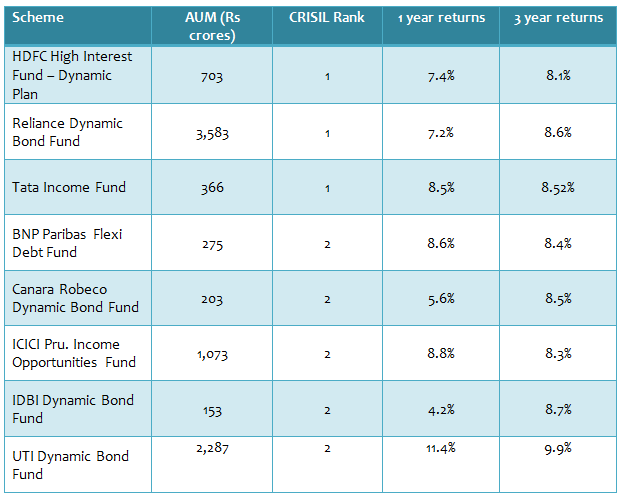 The table below shows some top long term income funds, based on the CRISIL’s most recent ranking for the quarter ended June 2014.
