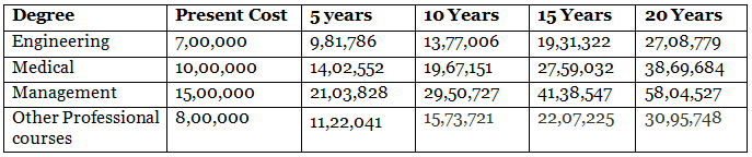 In the graph and table above the present and the probable future cost has been portrayed. Now you are beginning to understand the cost you will have to bear in future. This situation presents you with two options: yes and no. Yes, you could save and afford the cost in future. No, you can not afford the cost and that will only make your child’s future darker. The most important question that arises here is that of affordability. Can you afford these educational costs in future? Our answer is, yes! But with the right investment options and perhaps starting little early. As an investor it is crucial to be aware of the future value of your portfolio. Let us explore some options that you may employ to create the corpus for your child’s education.