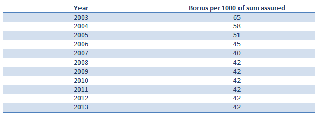 The table below shows the bonus declared by LIC since 2003.
