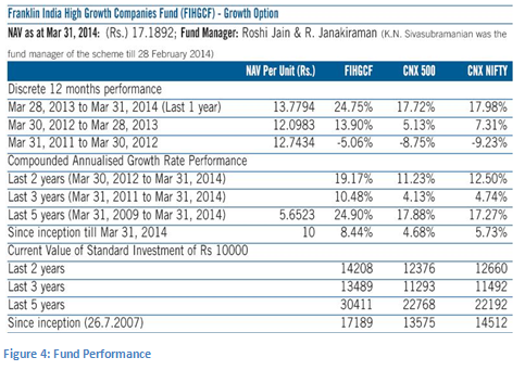 Most mutual fund houses usually publish monthly reports, also known as factsheet that contain critical information for each scheme. The fact sheet contain the scheme objectives, important information related to the portfolio of each scheme and performance details of all the schemes managed by the fund house. The fact sheet may also contain the fund manager's commentary on debt and equity markets. The fact sheet serves as a guide for both existing and potential investors to make investment decisions. However, retail investors very often do not read the fact sheet, even though it contains a wealth of information and is published every month. In this article, we will discuss how to effectively study the key information elements presented in the mutual fund factsheet, specifically for equity funds. In this article, we will use the March 2014 factsheet of the Franklin Templeton Mutual fund to evaluate, as an example, the Franklin India High Growth Companies Fund from Franklin Templeton stable. Below is an extract from the factsheet.
