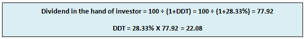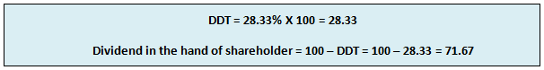 In the new budget, the DDT will be levied on the gross amount (i.e. Rs 100). Therefore, the DDT and the net dividend will be:-