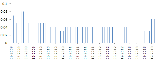 While dividend plans aim to pay regular dividends, the dividends are not assured. We have seen that monthly dividend options of mutual fund monthly income plans have missed regular monthly dividends. Please see below the monthly dividend payouts of some monthly income plans. While some plans have been regular in monthly dividend payouts, others have not been:-