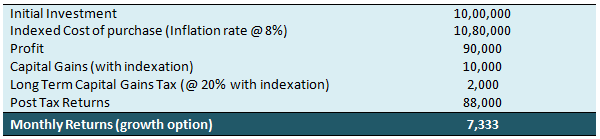 Let us now see, what is the monthly post tax return, if you opt for the growth option in a debt fund?