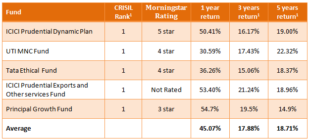 In this article, we have reviewed the top picks among diversified equity funds based on the most recent CRISIL rankings. You can see all these funds have given very strong returns. However, the suitability of each of these funds would depend on risk profile and time horizon. You should consult with your financial adviser if these diversified equity funds are suitable for your portfolio.