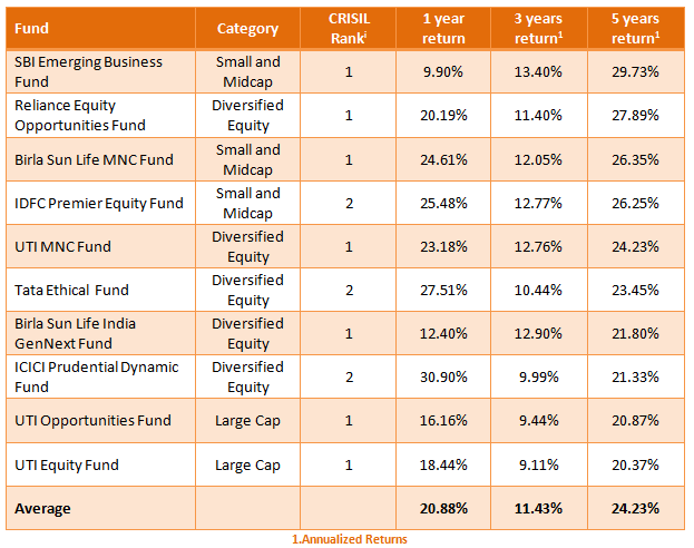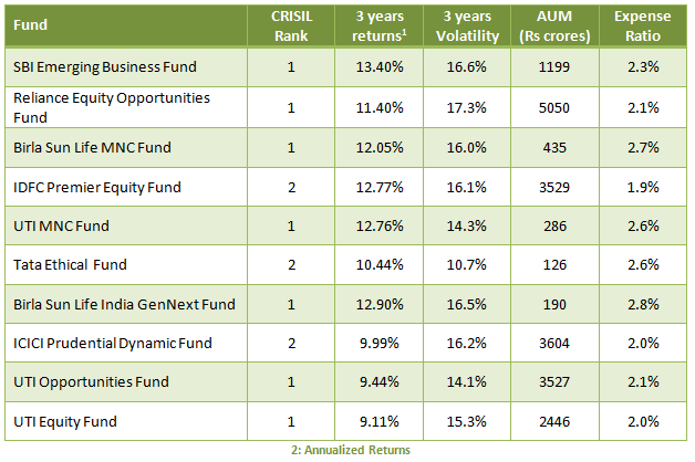 In our previous article, Consistent Performers: Top 10 consistent performers in equity funds Part 1, we had discussed about the top 10 consistent performers among equity funds, as per the recent CRISIL ranking of mutual funds. In this article, we will discuss some important performance related factors that makes these funds, the top 10 consistent performers. But first let us do a quick recap of the top 10 fund.
