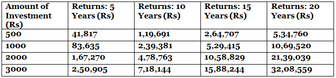 If you keep investing you always ensure you have extra savings and this keeps you secure from any major investment failure. You can also use the extra fund as emergency funds or make up for any underfunded goals. While it is mandatory to have goal driven investments it is also beneficial to have surplus investments without any specific purpose. Instead of letting your savings lie around, idly utilize it. The more investments are added to existing portfolio, the closer you come to your goal of successful investing. For example - Through Systematic Investment Planning (SIP) you can invest an amount as small as Rs 500 and let us see how the small pockets of money could have in the long run.