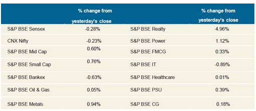 The equity markets were quite volatile during the day, and finally closed in the red. Certain sectors like realty, utilities, and metals, benefited from the budget. Small and mid-cap stocks also managed to outperform during the trading session. Hike in FDI limit in insurance to 49% will provide the much needed capital infusion to the sector from foreign players. An accommodative and predictable tax regime for foreign portfolio investors (FPIs) will provide comfort to them, and probably lead to higher interest levels for long term investment commitments. A boost to infrastructure sector will also be beneficial to revive the investment cycle once again. The budget also emphasizes on measures on enhancing domestic coal production and adequate supply of coal to the existing power plants. This will be beneficial to the power sector.