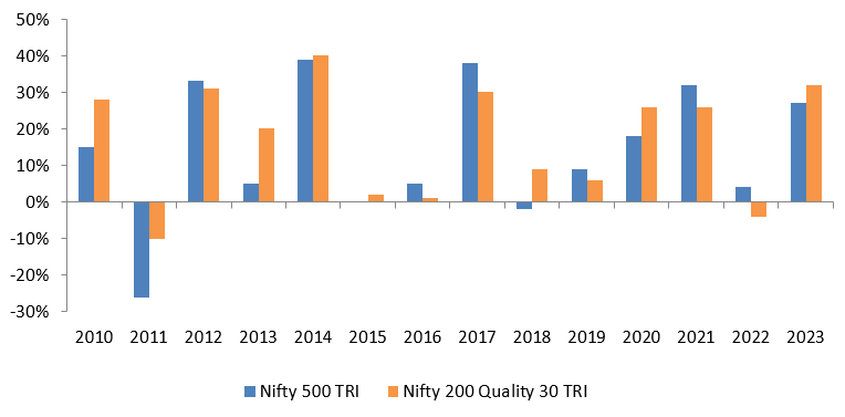 Source: National Stock Exchange, Advisorkhoj Research; Period: 01.01.2013 to 31.12.2023. Disclaimer: Past performance may or may be sustained in the future