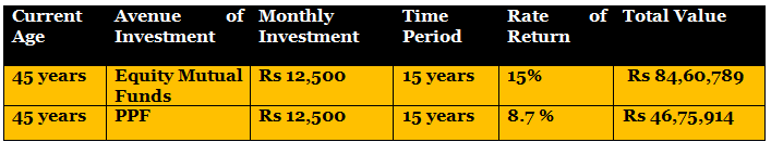 Historically, equities as an asset class has given decent inflation adjusted returns over a long period of time. If your investments have been parked in fixed deposits or public provident fund or even worse savings accounts then your returns are far behind the steeply rising inflation. Let us compare the returns between PPF and Equity Mutual Funds -