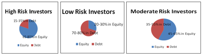 Equity funds invest in stocks / shares of various companies listed on the stock markets.The performance of these companies over the years and various other market related factors, determine the kind returns that you may earn. These funds generally high risk – high return, and are used to work towards investors long term financial goals, of 3 years and more.