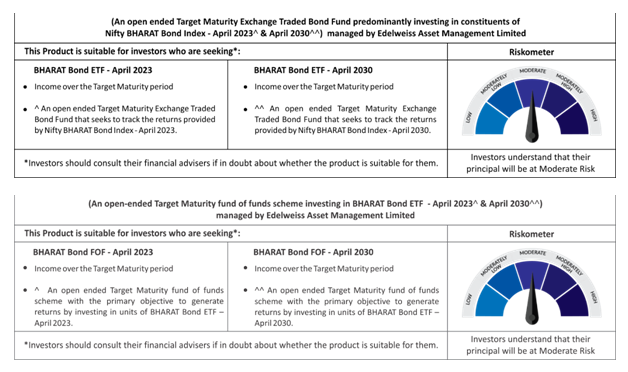 Other benefits of BHARAT Bond ETF include better transparency, predictably of return, higher liquidity with easy and low-cost access to high quality public sector company bonds.