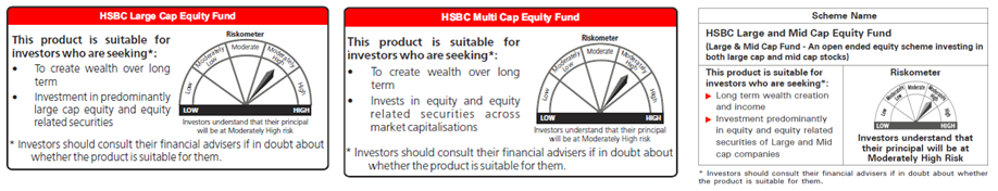 This document has been prepared by HSBC Asset Management (India) Private Limited (HSBC) for information purposes only and should not be construed as an offer or solicitation of an offer for purchase of any of the funds of HSBC Mutual Fund. All information contained in this document (including that sourced from third parties), is obtained from sources HSBC, the third party believes to be reliable but which it has not independently verified and HSBC, the third party makes no guarantee, representation or warranty and accepts no responsibility or liability as to the accuracy or completeness of such information. The information and opinions contained within the document are based upon publicly available information and rates of taxation applicable at the time of publication, which are subject to change from time to time. Expressions of opinion are those of HSBC only and are subject to change without notice. It does not have regard to specific investment objectives, financial situation and the particular needs of any specific person who may receive this document. Investors should seek financial advice regarding the appropriateness of investing in any securities or investment strategies that may have been discussed or recommended in this report and should understand that the views regarding future prospects may or may not be realized. Neither this document nor the units of HSBC Mutual Fund have been registered in any jurisdiction. The distribution of this document in certain jurisdictions may be restricted or totally prohibited and accordingly, persons who come into possession of this document are required to inform themselves about, and to observe, any such restrictions.