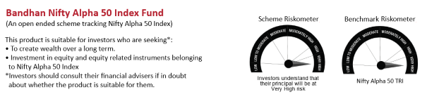 The Bandhan Nifty Alpha 50 Index fund will track the Nifty Alpha 50 Index, which is a factor-based index designed to capture the alpha factor. The index aims to add stocks that have displayed high alpha compared to the market and remove stocks where the alpha is diminishing. The alpha for each of the stock is based on Jensen’s Alpha computed using 1-year trailing prices.