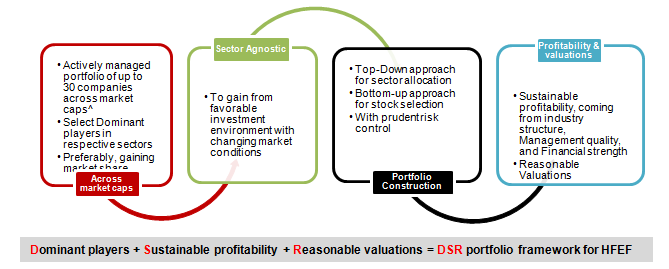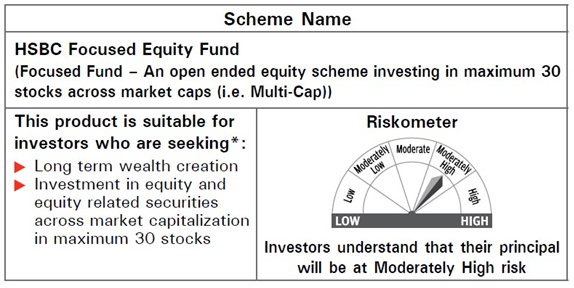 HSBC Focused Equity Fund (HFEF) is all about investing in dominant players with sustainable profitability available at reasonable valuations. As the name suggests, Focus theme is essentially investing in limited number of high conviction companies. Maximum no. of stocks in the portfolio would be limited to 30 stocks but they would be spread across sectors as well as market capitalization.
